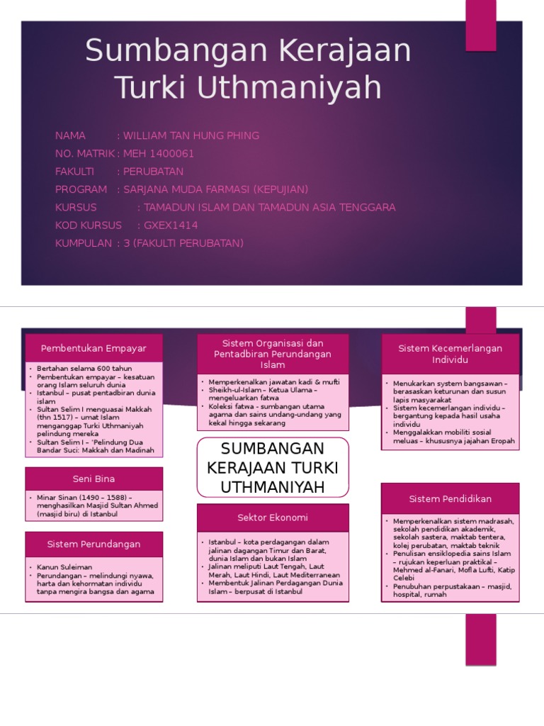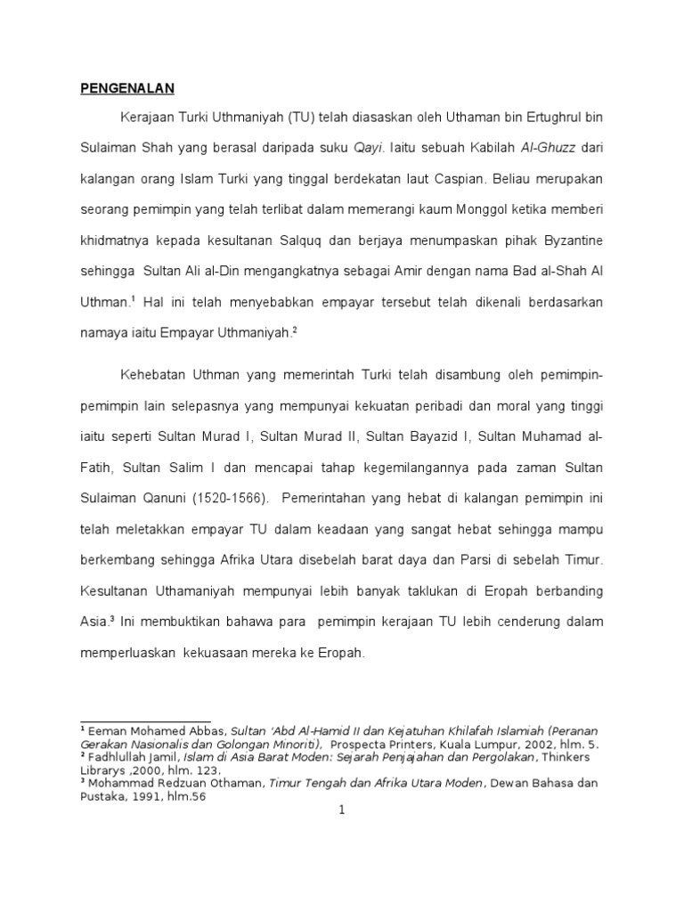Terangkan sumbangan kerajaan Turki Uthmaniyah terhadap perkembangan Islam. Close suggestions Search Search. Beliau bertindak sebagai penasihat kepada kerajaan turki uthmaniyyah ketika itu.